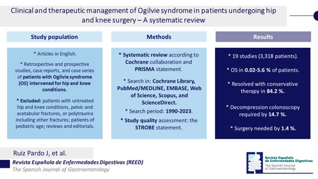 Ruiz Pardo J, Cobo Cervantes C, Sánchez Fuentes P. Clinical and therapeutic management of Ogilvie syndrome in patients undergoing hip and knee surgery ‒ A systematic review. 10555/2024