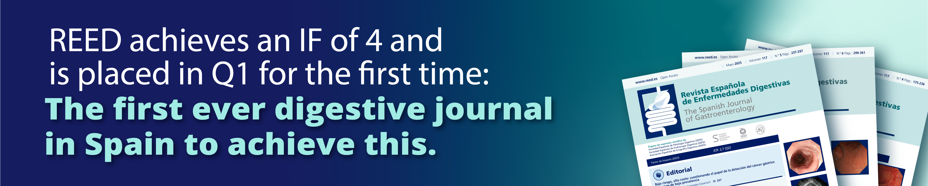 The Spanish Journal of Gastroenterology is the official organ of the Sociedad Española de Patología Digestiva, the Sociedad Española de Endoscopia Digestiva and the Asociación Española de Ecografía Digestiva