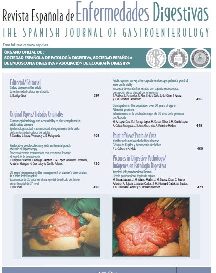 The Spanish Journal of Gastroenterology is the official organ of the Sociedad Española de Patología Digestiva, the Sociedad Española de Endoscopia Digestiva and the Asociación Española de Ecografía Digestiva