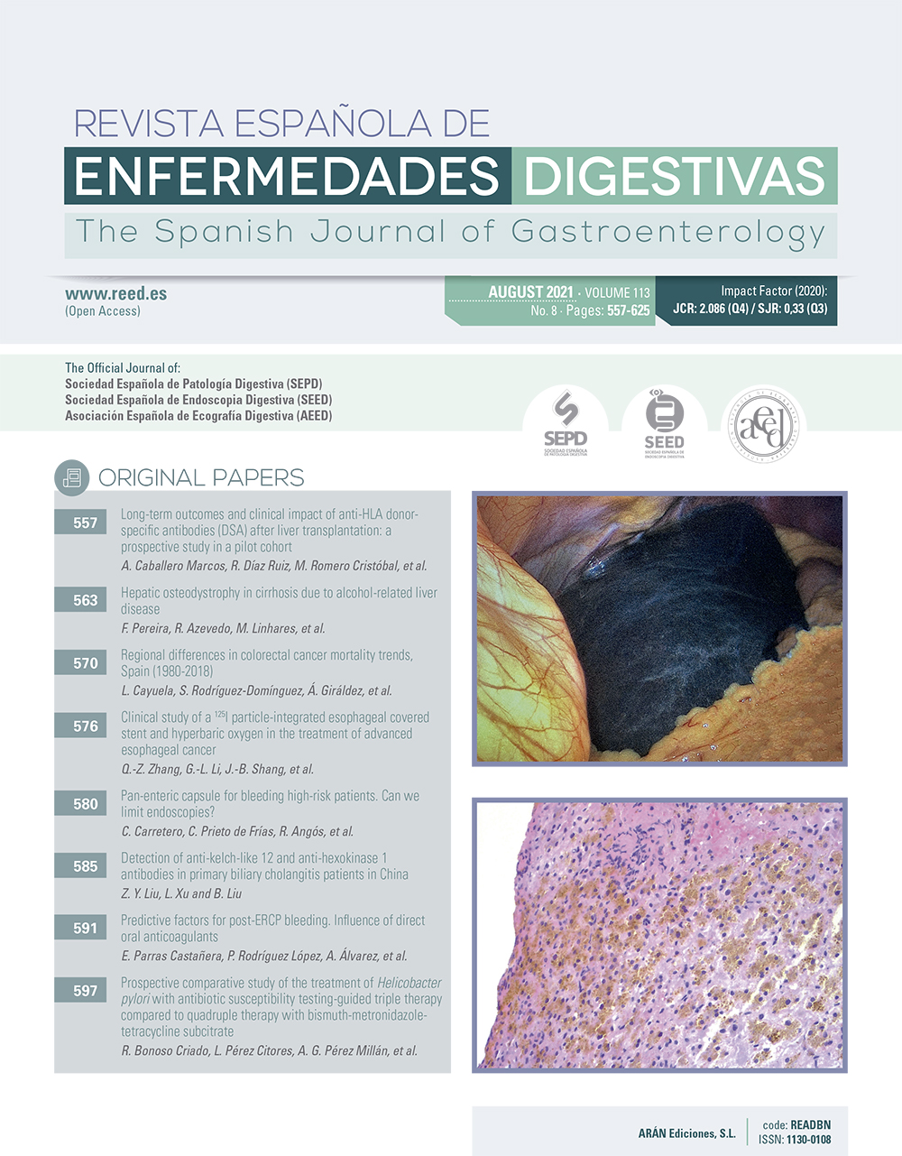 The Spanish Journal of Gastroenterology is the official organ of the Sociedad Española de Patología Digestiva, the Sociedad Española de Endoscopia Digestiva and the Asociación Española de Ecografía Digestiva